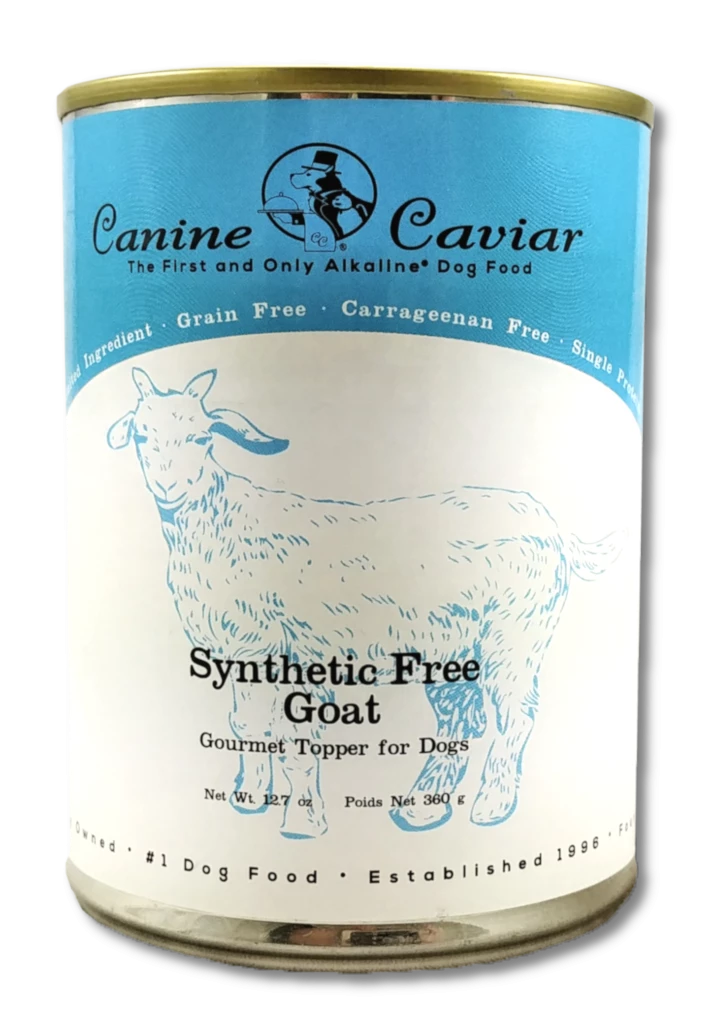 Canine Caviar’s Synthetic Free Goat Gourmet Topper & Canned Dog Food Supplement is a single protein diet that contains No Gums, No Grains, No fillers, No Added Sugar or Salt, and No Artificial Colors or Preservatives and Zero Synthetic Additives. Canine Caviar canned diets are perfect for dogs that have allergies to other proteins, if you are looking for an alternative to raw (the can is cold processed) or an alternative protein to stimulate your pet’s immune system. You can feed Canine Caviar canned foods as a treat, supplement, or the base of a home prepared meal.