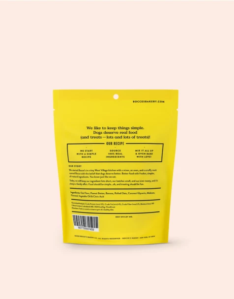 Ingredients: Oat Flour, Peanut Butter, Bananas, Rolled Oats, Coconut Glycerin, Molasses, Flaxseed, Vegetable Oil, Citric Acid