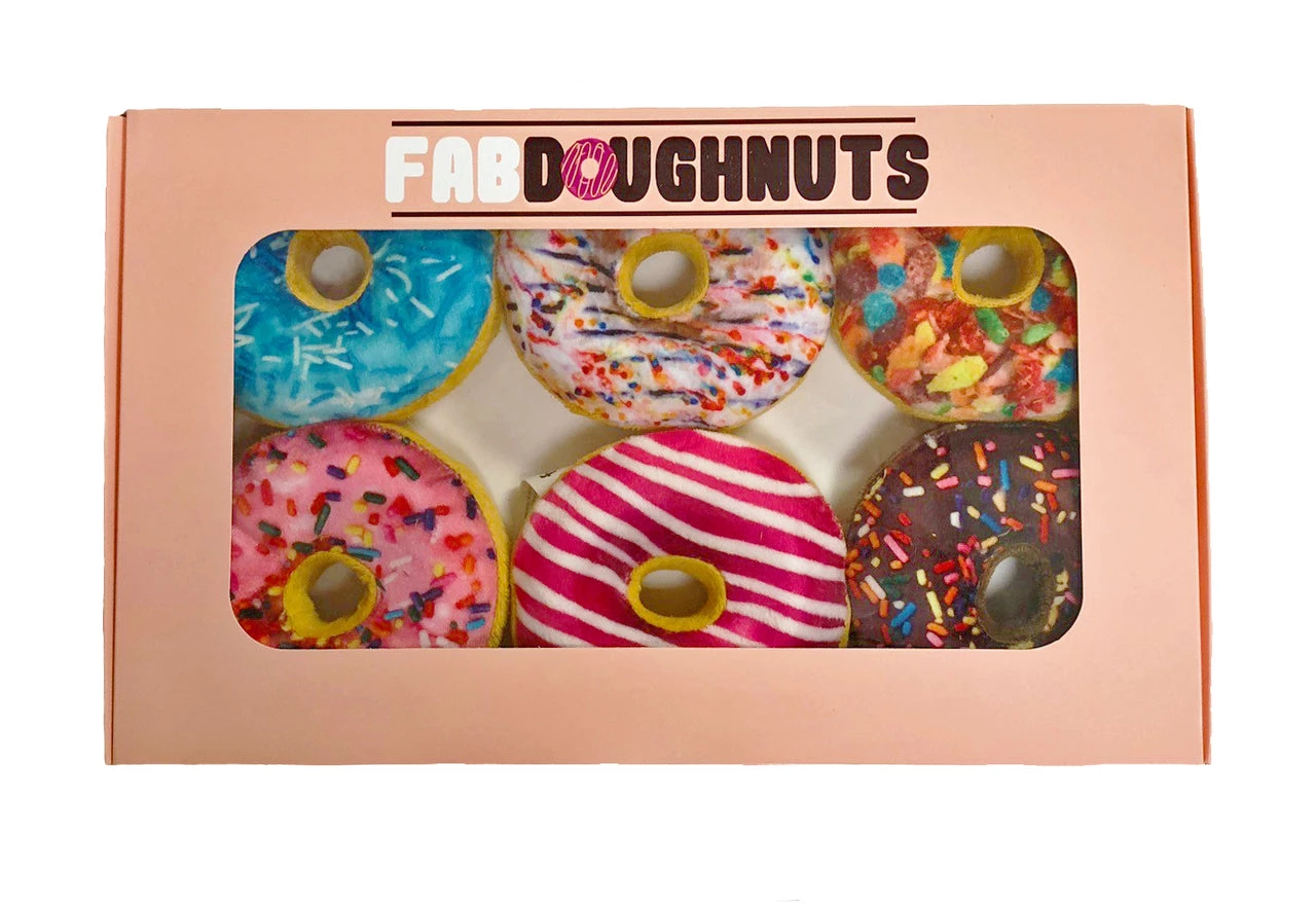 What’s a better gift for a dog than a box of yummy squeaky doughnuts? Give the gift of six vibrant and fun squeaky toys and keep a dog occupied for a long time to come!