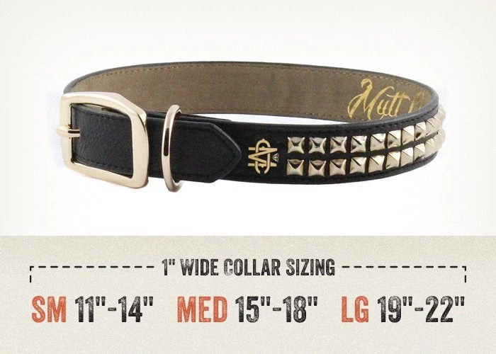 Furly’s Pet Supply Dog Mutt Couture Black Leather Gold Stud Collar