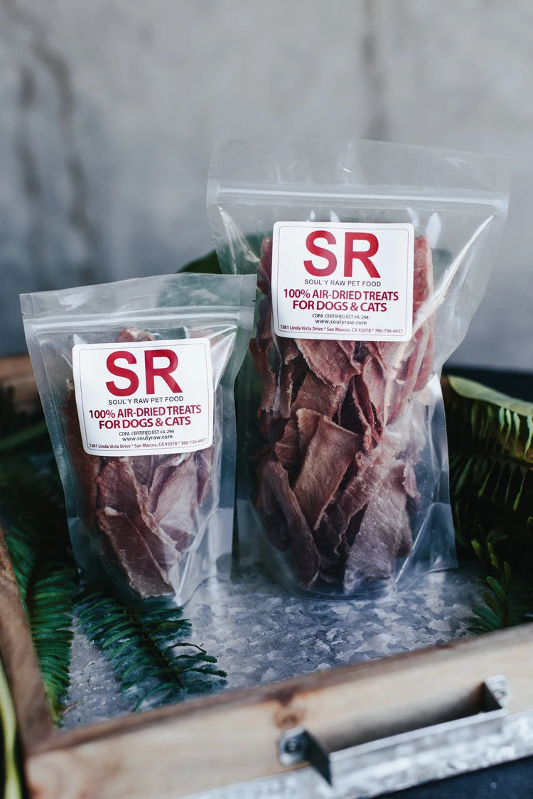Single protein treats processed using our unique air-drying method to maintain the highest nutritional benefit and taste for your pets. No heat, preservatives, or chemicals added and safe for all breeds of dogs and cats.