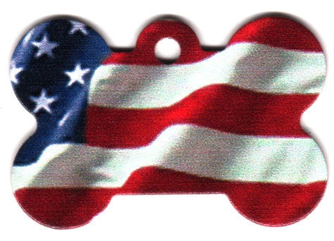 American Flag Bone Shaped Dog ID Tag with Custom Engraving