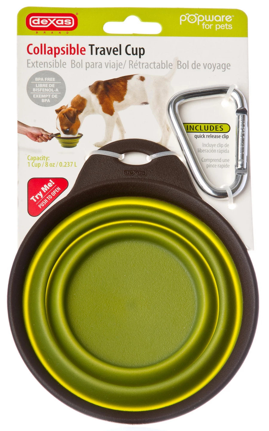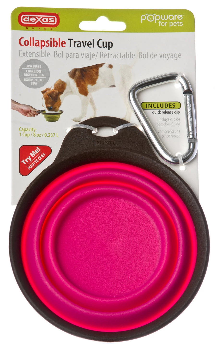 Expandable food and water cups that you can latch onto your dog’s leash when you are on the go. Collapses to less than 0.5 inches thick. Quick-release clip attaches to leashes, belt-loops, purse, stroller and so much more. Great for traveling, camping, walks and pet sport events. Washes collapsed.