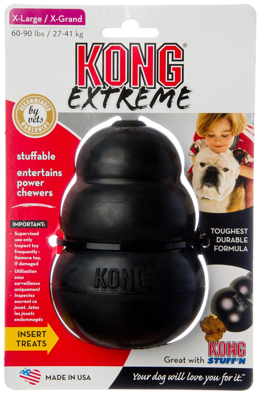KONG Extreme represents the most durable version of our original KONG toy. The ultra-strong, ultra-durable, black rubber compound is recommended for the most powerful chewers.