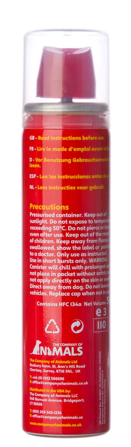 The Pet Corrector emits a hiss of air which mimics this sound, to interrupt undesirable behaviors in dogs such as jumping up or stealing. There is a detailed training guide included, with helpful training tips and key dos and don’ts. It is important that the Pet Corrector is used responsibly and that alternative desirable behaviors are rewarded.