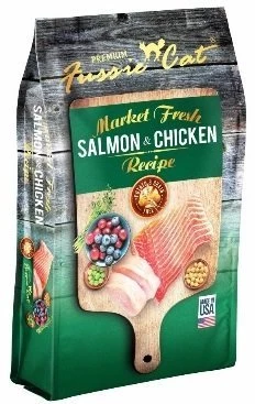 Salmon, chicken meal, peas, chickpeas, chicken fat (preserved with mixed tocopherols and citric acid), turkey meal, pea flour, natural flavors, flax seeds, catfish meal, salmon meal, dicalcium phosphate, fructooligosaccharide, potassium chloride, minerals (iron proteinate, zinc proteinate, copper proteinate, manganese proteinate, cobalt proteinate), DL methionine, choline chloride, blueberries, cranberries, vitamins (vitamin A acetate, vitamin D3 supplement, vitamin E supplement, niacin, d-calcium pantothenate, thiamine mononitrate, riboflavin supplement, pyridoxine hydrochloride, folic acid, biotin, vitamin B12 supplement), taurine, lactic acid, kelp meal, calcium iodate, sodium selenite, rosemary extract.