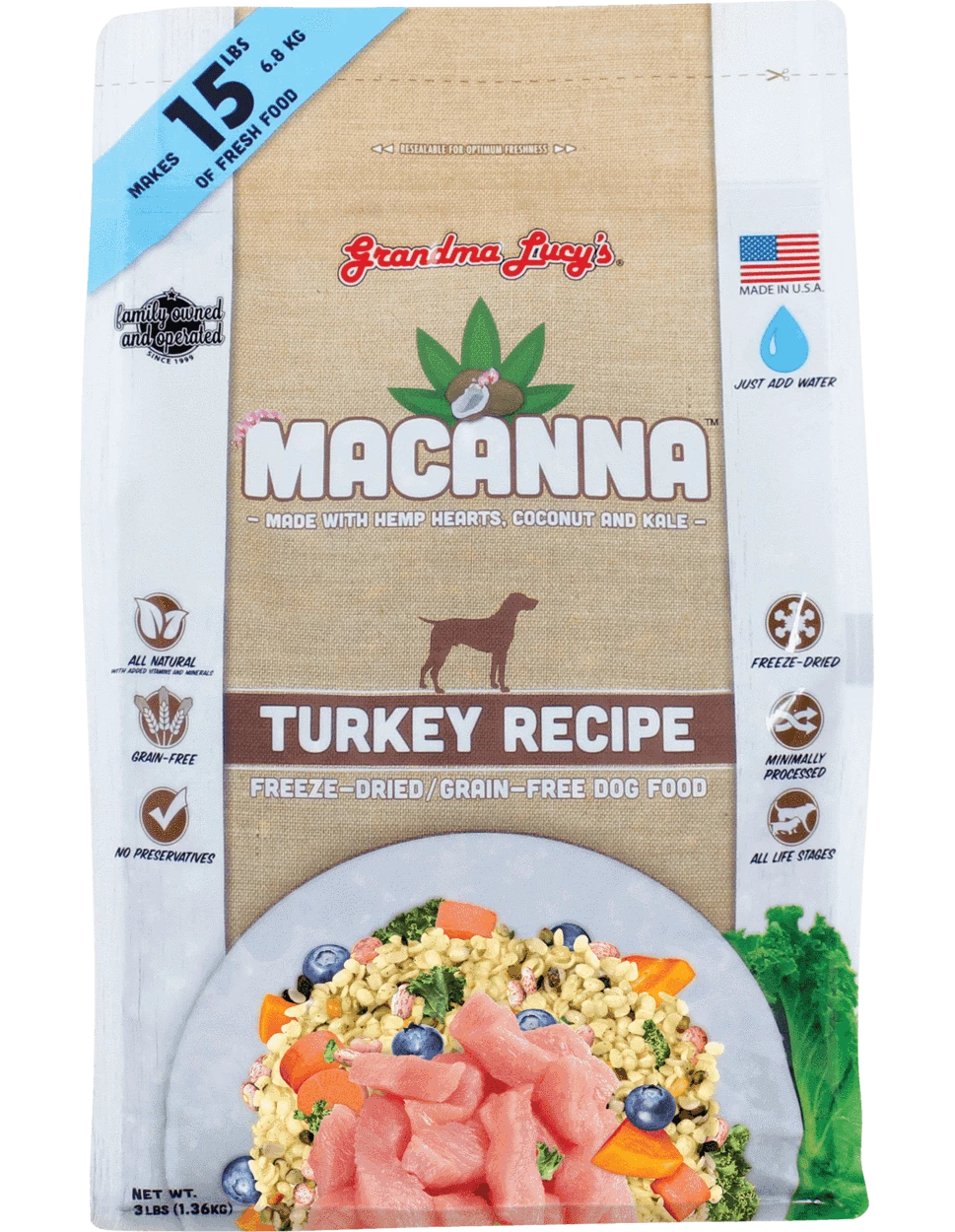 Turkey, Pinto Beans, Hemp Hearts, Carrots, Coconut, Pumpkin, Kale, Blueberries, Turmeric, Vitamin A Supplement, Vitamin D3 Supplement, Vitamin E Supplement, Niacin Supplement, Iron Proteinate, Calcium Carbonate, Phosphorous, Zinc Proteinate, Riboflavin Supplement, Thiamine Mononitrate, Potassium Chloride, Manganese Proteinate, Copper Proteinate, Magnesium Chloride, Pyridoxine Hydrochloride, Vitamin B12 Supplement.