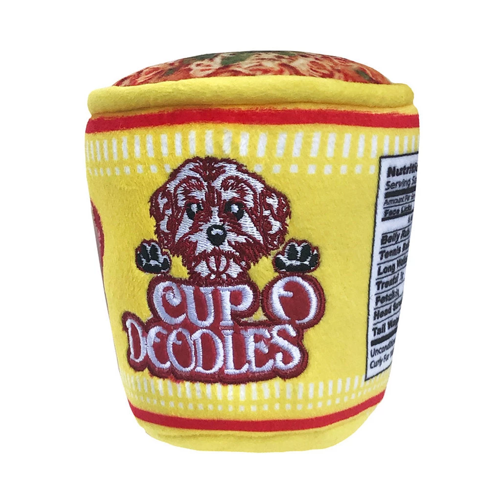 Super fun plush cup o doodles dog toy! This toy squeaks and has a layer of crinkle paper on the inside!