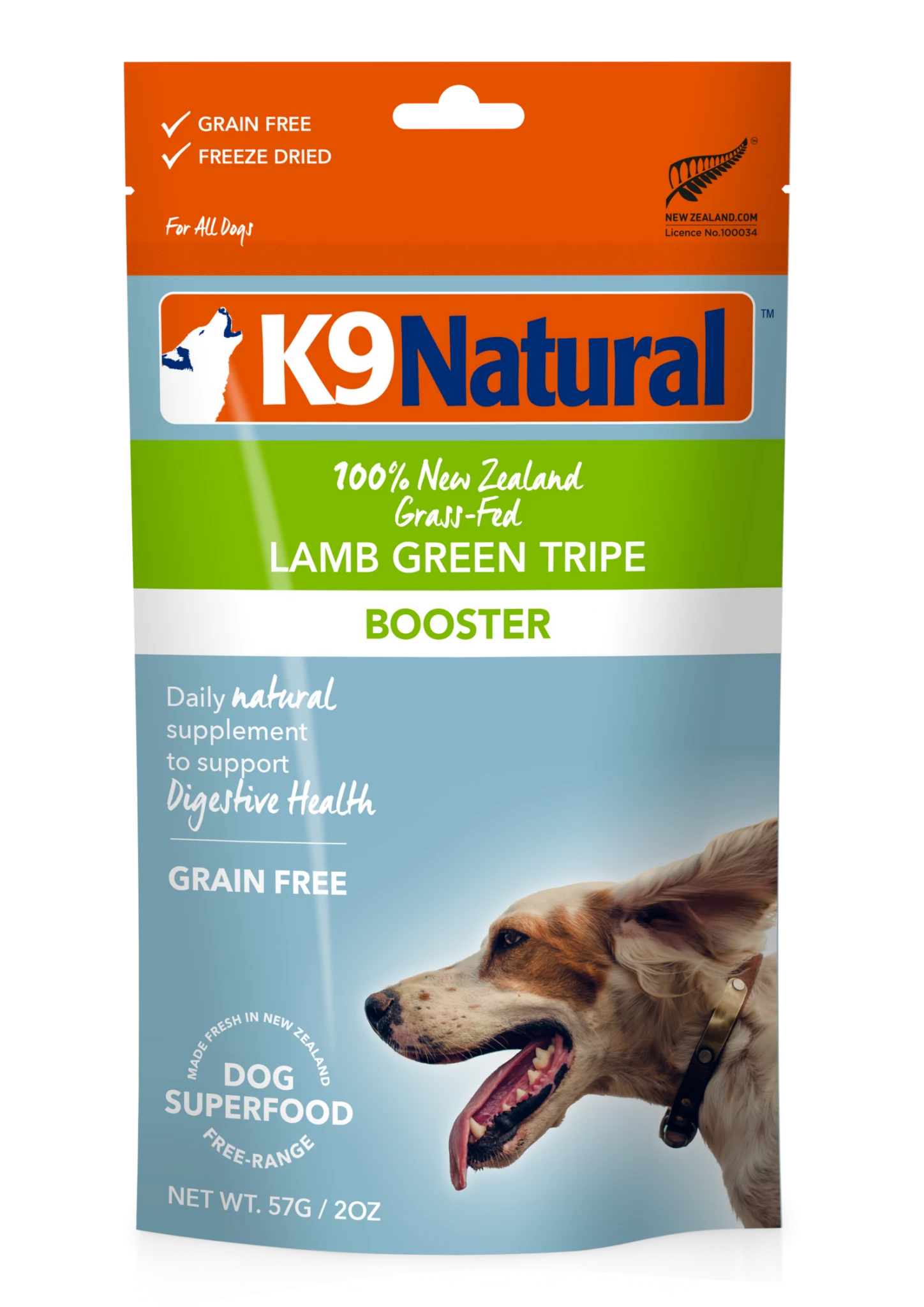 K9 Natural Freeze Dried Raw Green Tripe contains natural probiotics. It is recommended to assist the transition for dogs onto a species appropriate natural raw diet. Feeding raw freeze dried green tripe for approximately one week before you start to feed a K9 Natural diet can help make a smooth transition.