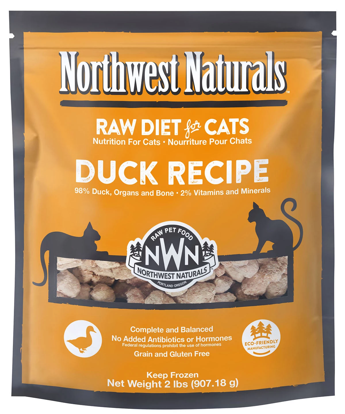 Duck with Bone, Duck Heart, Duck Liver, Egg, Gelatin, Water, Dulse Powder, Dried Kelp, Ground Flaxseed, Organic Psyllium Husk Powder, Salmon Oil, Inulin, Potassium Chloride, Sodium Chloride, Taurine, Vitamin B Supplement, Copper Proteinate, Manganese Proteinate, Vitamin E Supplement, Copper Proteinate, Mixed Tocopherols (as preservative). Vitamin D3 Supplement.