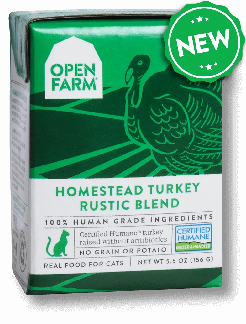 Open Farm Homestead Turkey Rustic Blend cat food is formulated to meet the nutritional levels established by the AAFCO Cat Food Nutrient Profiles for maintenance.