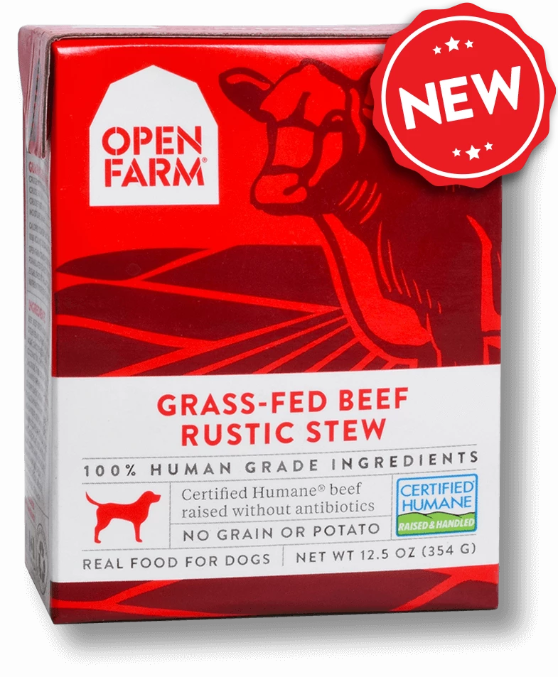 Open Farm Grass-Fed Beef Rustic Stew dog food is formulated to meet the nutritional levels established by the AAFCO Dog Food Nutrient Profiles for maintenance.