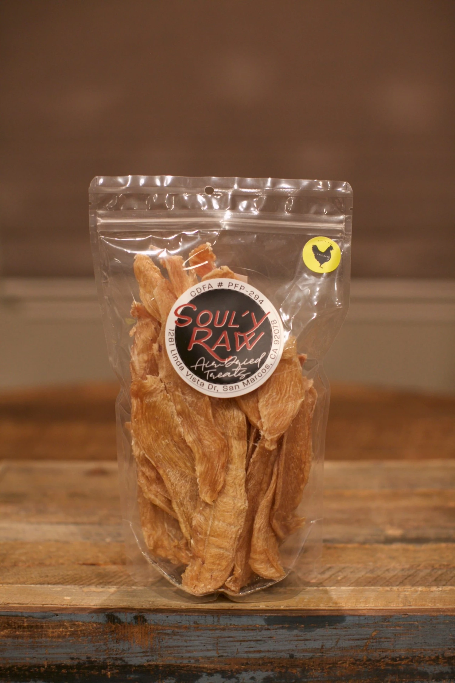 100% Air-Dried Free Range, Boneless, Skinless Chicken Breast Strips.