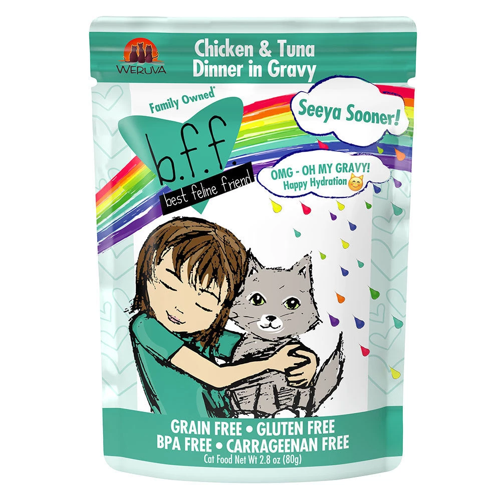 Chicken Broth, Chicken, Tuna, Potato Starch, Calcium Lactate, Tricalcium Phosphate, Choline Chloride, Taurine, Zinc Sulfate, Vitamin E Supplement, Thiamine Mononitrate (Vitamin B1), Niacin Supplement (Vitamin B3), Calcium Panthotenate, Vitamin A Supplement, Potassium Iodide, Manganese Sulfate, Riboflavin Supplement (Vitamin B2), Pyridoxine Hydrochloride (Vitamin B6), Ferrous Sulfate, Copper Sulfate, Vitamin D3 Supplement, Folic Acid, Vitamin B12 Supplement, Menadione Sodium Bisulfite Complex (Source of Vitamin K).